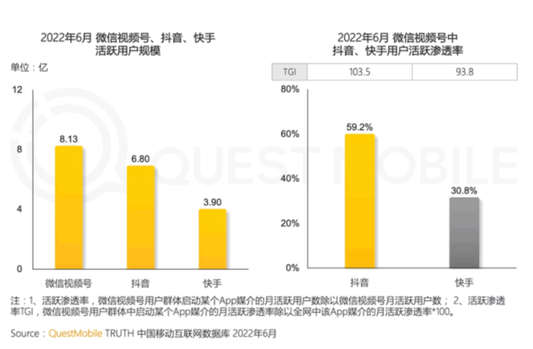 近日,马化腾在年底内部大会上的讲话成为全网热议的焦点,“全厂的希望”也再次让舆论的目光投注到视频号身上。 Quest Mobile发布《2022中国移动互联网半年报告》显示,截止今年6月,微信视频号月活规模突破8亿,已经超过抖音。 然而,视频号增长提速,抖音、快手却并未受到明显冲击。