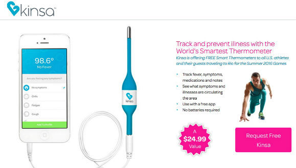 为了跟踪预防“寨卡”病毒,一家专注于制造智能温度计的公司 Kinsa开发出了一款 app,用来帮助监测一些运动员的体温数据。
