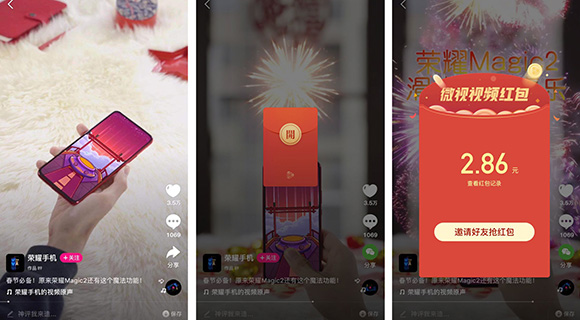 拍视频、塞红包、发布并分享