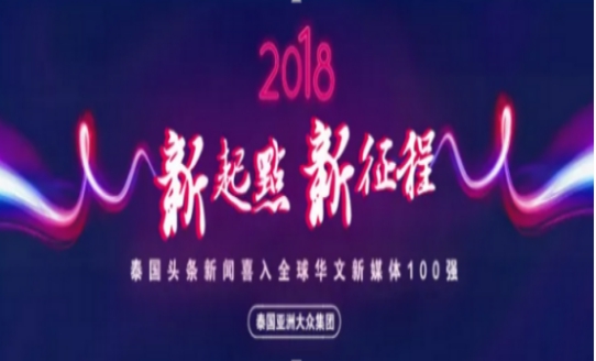 2018年5月25日,泰国亚洲大众集团祝贺旗下媒体《泰国头条新闻》入选百大海外华文新媒体影响力排行榜,成绩喜人!