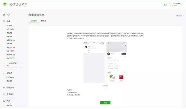 认证品牌名称,开通微主页小程序
