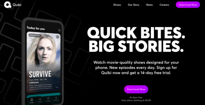 Quibi是一个专门为手机端打造的、高端付费短视频流媒体。