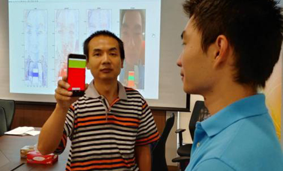 他解释,使用Face Flashing人脸识别检测方案时,屏幕会随机闪烁8种包括红、绿、蓝三原色的光,透过镜头记录和分析脸部反射的光,便能识别人脸独一无二的立体几何轮廓,验证用户身份,分辨伪造影像,加强保安。