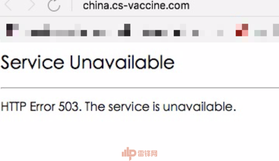 随后,雷锋网编辑打开长生生物的官网,显示网站已无法打开,错误提示503。