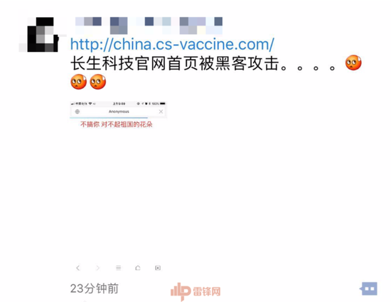 雷锋网消息,7月23日上午8点半左右,网络安全行业从业者“雷锋”发布朋友圈爆料称,“长生科技官网首页被黑客攻击”。