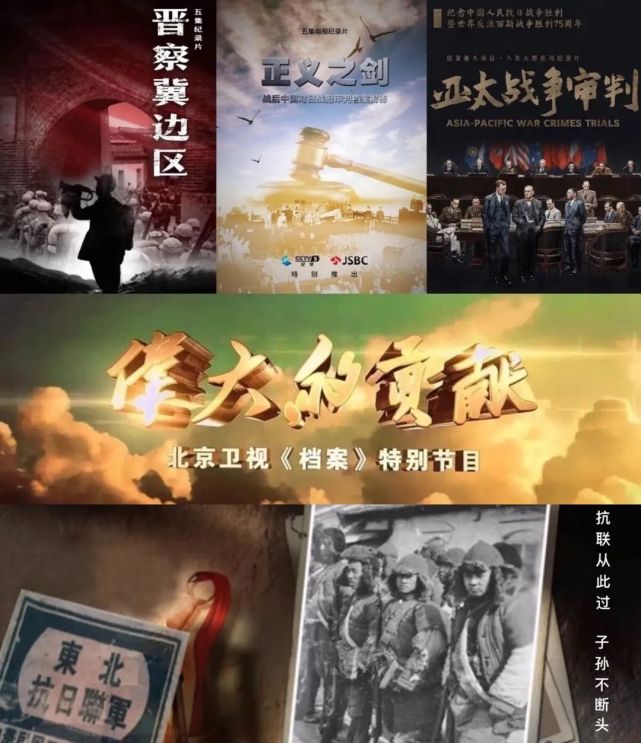 爱国主义题材纪录片带领观众重温抗战历史,讴歌爱国精神。《晋察冀边区》(CCTV4)再现在中国共产党带领下,晋察冀边区军民艰苦抗战历程,收视率1.149%;《正义之剑》(CCTV7)记录“二战”后审判日本战犯过程,观看完成度高,首播每集平均忠实度61.534%;《伟大的贡献》(北京卫视)解读抗战历史,单集收视率最高值0.105%,居同时段地方卫视节目收视率前列。《抗联从此过 子孙不断头》(北京卫视)、《亚太战争审判》(东方卫视)等纪录片亦取得了不错的收视成绩。