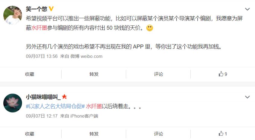 反之亦然,《下一站是幸福》、《以家人之名》两部爆剧让水阡墨名声大噪,但连续两次烂尾也令许多观众考虑今后要 " 避雷 " 这位编剧。