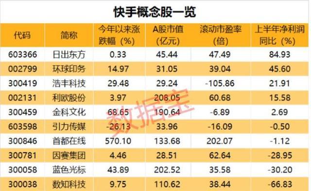 消息一出,通过全资子公司间接少量份额持股快手的日出东方,曾经在互动平台表示为快手提供数据服务的首都在线,午后涨停封板,后者涨幅达16.28%,因赛集团、数知科技、浩丰科技、引力传媒、大众公用等“快手概念股”大涨。