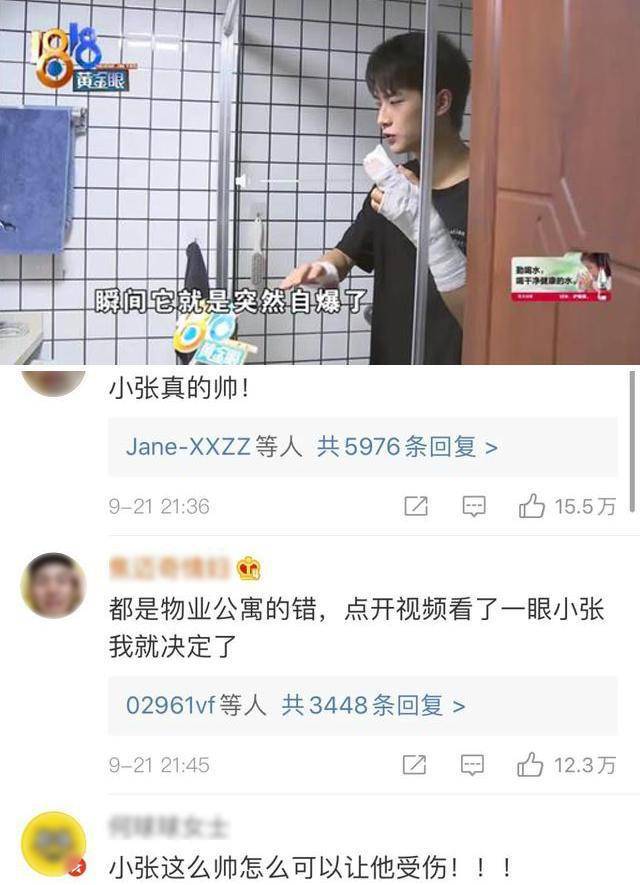 “都是物业公司的错,点开视频看了一眼小张我就决定了。”“小张真的帅!”“小张这么帅怎么可以让他受伤!”
