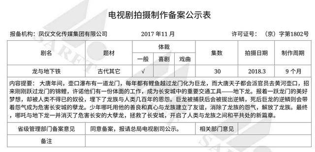 另一电视剧版《龙与地下铁》同样由凤仪文化开发,最早于2017年通过备案,目前暂无下一步进展。