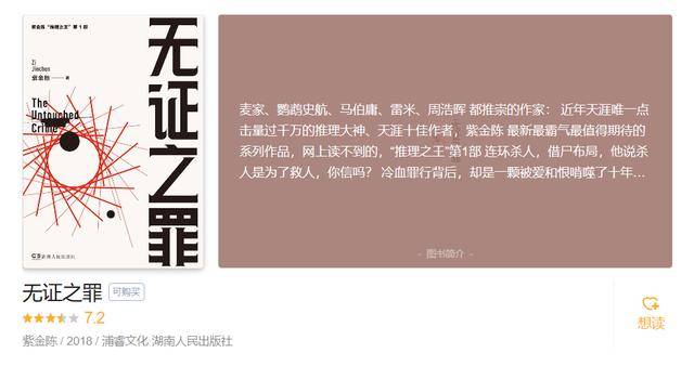“作家IP”的成功打造,有赖于作家本身稳定的作品输出质量。紫金陈的“推理之王”三部曲《无证之罪》《坏小孩》《长夜难明》,豆瓣评分7.3、7.2、8.5,小说质量稳定,未影视化之前已经征服了一批读者。