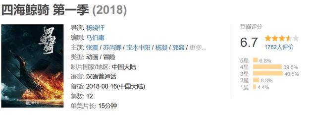 网剧版《长安十二时辰》坐拥豆瓣8.3分高口碑的同时,马伯庸另一部影视改编作品——动画版《四海鲸骑》第一季,仅收获了6.7分。