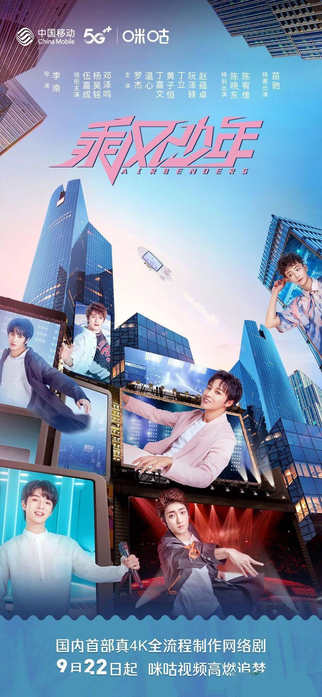 《乘风少年》由李南执导,伍嘉成、杨昊铭、邓泽鸣、罗杰、丁嘉文、黄子恒、丁立、阮泽轶、蔡正杰等主演,聚焦心怀梦想的男团练习生,讲述这群时下正是热点的年轻人,为站上荣耀舞台一路逆风成长的故事,正在咪咕视频、芒果TV播出。