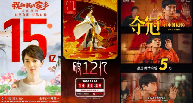 纵观今年国庆强片,疫情复工后,《我和我的家乡》和《一点就到家》从立项开始便是为十一档“量身定做”,在题材和主题上紧抓“中秋回乡”的情绪,前者花式讲述乡村扶贫,后者魔性畅聊古寨创业;而《夺冠》和《姜子牙》,利用正片、片尾彩蛋出现的“团圆饭片段”,过年旧物料循环利用,打出“国庆中秋和爸妈一起去电影院把年补回来”的精准营销口号。