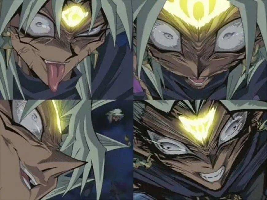 在这部动漫中,马利克·伊修达尔原本的人设是冷静淡定,可一旦变成黑暗人格,面部表情就会变得狰狞扭曲,以表现他从「冷酷」到「狂热」的转变,而这张经典的「颜艺脸」也被公认为颜艺始祖。