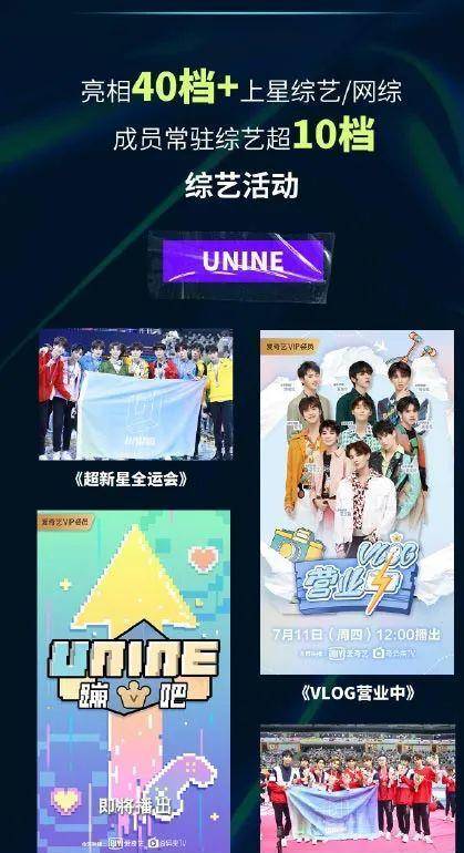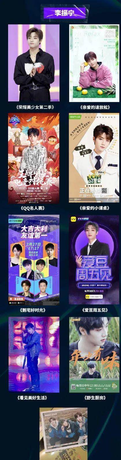 截图自UNINE官博在该团解散时发布的UNINE成绩单,可以看出李振宁参与的综艺节目所属平台并不多