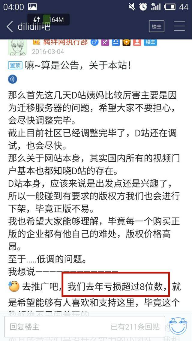 2016年,D站工作人员曾在知乎问答中回复网友,2015年D站年亏损超过8位数。非法上传的《甲铁城的卡巴内瑞》为D站带来了流量甜头,D站自然不会放弃。