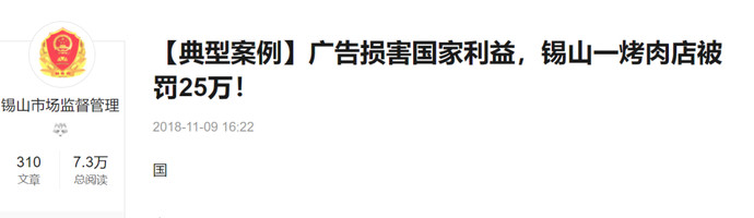除了知名企业,也有个体经营户因违反该项规定被罚的情况发生,锡山市场监督管理就曾公布过一个相关案例。
