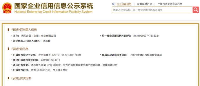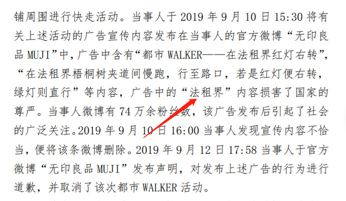 比如在2018年11月15日,无印良品就因在微博中使用“法租界”一词遭到上海市黄浦区市场监督管理局处罚;