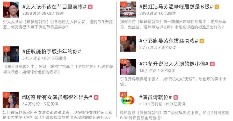 《演员请就位2》微博部分热议话题