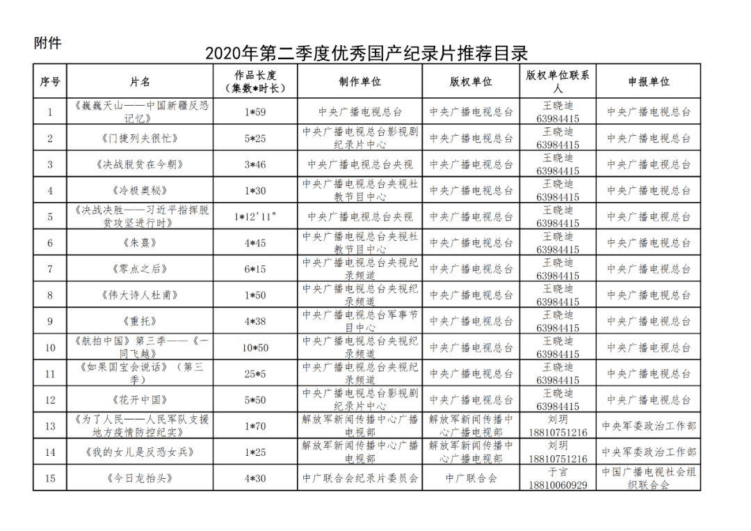 2020年第二季度优秀国产纪录片的通知