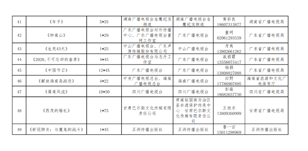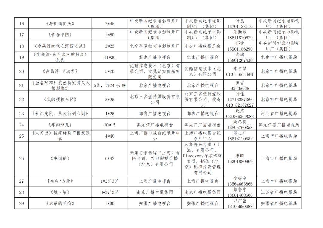 11月2日,广电总局发布《关于推荐2020年第二季度优秀国产纪录片的通知》。通知指出,为充分发挥季度推优纪录片的示范引导效应,广电总局日前组织相关广电机构负责同志和专家学者进行评审,从全国选送的162部纪录片中推选出49部2020年第二季度优秀国产纪录片。