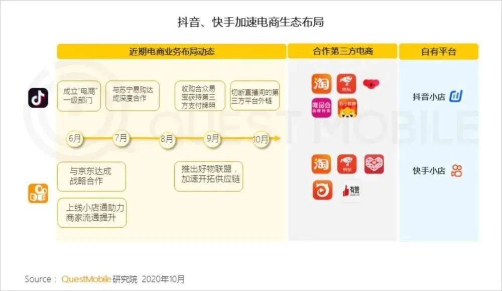 在广告收入之外,电商成为抖音和快手都开始聚焦的新战场。此前,快手先于抖音在直播带货领域推出多位带货达人,形成了丰厚的直播打赏等收入。但今年以来,抖音以高价签下话题人物罗永浩为标志,开始在直播带货领域奋起直追。近期,抖音直接宣布禁止直播时链接第三方商品来源,从而扶持抖音体系内的抖音小店,更显示出其在打造电商闭环上的野心。