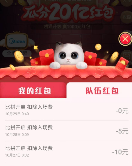 另外一位名叫张利的玩家告诉Tech星球。“养猫活动攒的是购物红包,红包攒得特别慢,几毛钱几毛钱一块多地攒,玩了几天就不想打开。而且不打开的话,就会出现扣费的情况,比如攒了十几块钱,接下来就会被不知道从哪出来的比拼活动扣除入场费,我真的完全不知道有这个活动,扣钱也没通知我,还以为攒了一点点至少买东西能用上。”