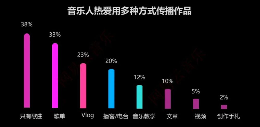据《报告》称,除发布音乐作品外,62%的音乐人也会发表其他形式的音乐内容,比如歌单、短视频、电台节目、vlog等。音乐发行形式的多样化趋向是催使短视频平台成新兴音乐宣发平台的契机。