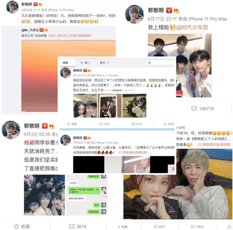 郭敬明是流量演员、新晋爱豆的收割机,总能通过一些工作的偶然接触,把他们变成互动火热的时代姐妹花。