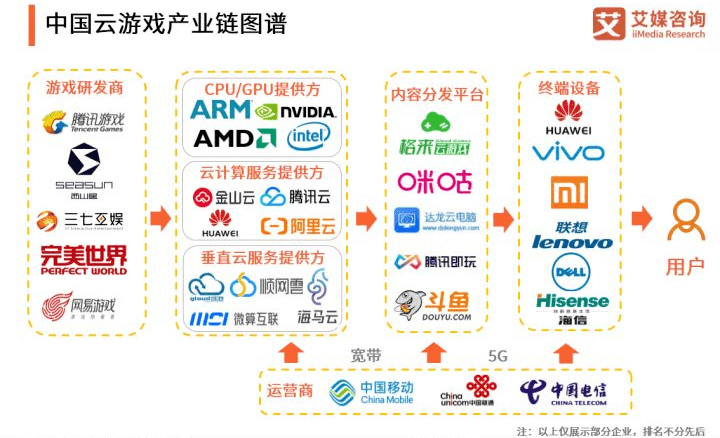 云游戏是目前5G商用最好的应用之一,这一点是行业共识。上游CP如腾讯、网易、西山居、完美世界等均已布局云游戏业务。依托GPU厂商英伟达和超微半导体,网络供应商移动联通的5G服务,和云计算厂商阿里云、金山云和华为等硬件厂商一同发力。可以说云游戏目前软硬件齐备,只欠东风。