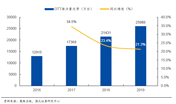 根据奥维云网的数据,截止到2019年末,我国OTT智能终端激活规模已经达到2.6亿台。