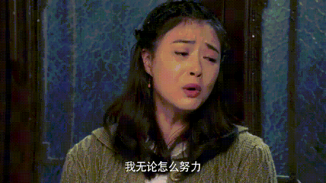 剧中,她几乎全是靠紧皱眉头、瞪大眼睛、表情无辜,眼中含着泪水,用力在装嫩演绎出一位悲情忧郁的“少女”。