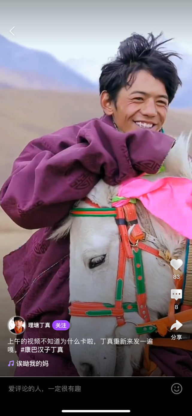 最近很火的丁真在短视频平台走红。来源:微视@理塘丁真