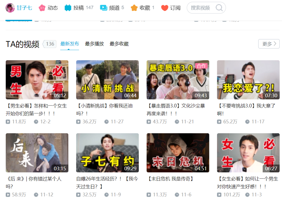 公司划出一条基准线:前期投入10万流量成本,如果账号能在3个月内达到10万粉丝,就被认为具有一定商业化能力,算孵化成功。他们同时要求达人在公司以坐班的形式参与创作,提高产出效率;通过这种方式,青藤孵化出如甘子七、达达达布溜、陈吃饭等知名UP主账号。