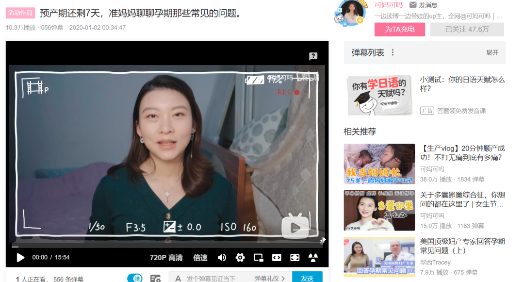 青藤已经开始布局相关账号,旗下vlog类UP主“可妈可吗”年初进驻B站后,分享主题一直围绕家庭情感生活与育儿,目前已经积累了超过45万粉丝。