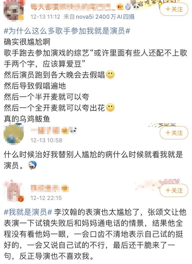 因为爱豆类演员的占比率实在太大,也有不少网友有阿杠同款担忧,于是不少人都说这档节目是“演员版的爱豆101”。