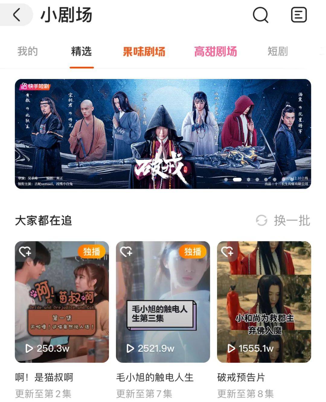 短剧这个新品类刚发展起来时,确实经历了一段野蛮生长期,毕竟投身短剧创作的平台、作者、MCN机构、影视公司等皆是摸索着前行。但如今,不仅如御儿古风、孟婆十九、魔女月野等头部作者的创作技巧更为纯熟,快手也加速了和开心麻花等专业厂牌的合作,这都为小剧场的观众带来了更高质的内容供应。