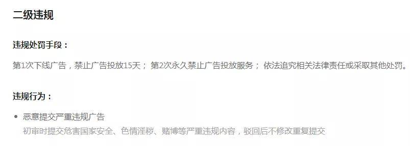 运营者们在投放微信广告时最好仔细阅读相关禁止规定,以免在提交广告时不经意踩了微信广告的内容红线,等待大家的将是不同程度的梯级处罚。