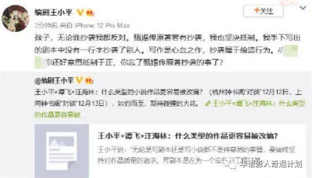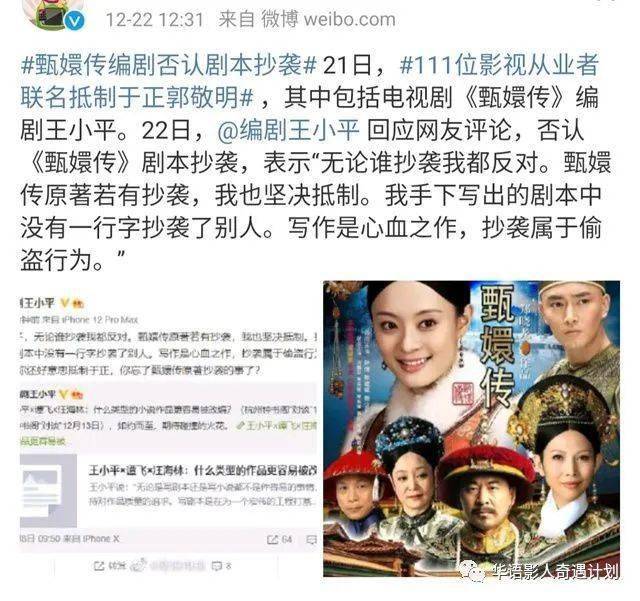 12月22日,电视剧《甄嬛传》的编剧王小平回应网友评论,否认剧本抄袭。王小平说,谁抄袭我都反对,如果甄嬛传原剧本有抄袭我也会抵制,我手下写出的剧本没有一行字是抄了别人,写作是心血之作,抄袭属于偷盗行为。这一番话,坚定地表达了自己反对抄袭的立场,并且王小平也破了一直笼罩在电视剧《甄嬛传》上空的抄袭疑云。