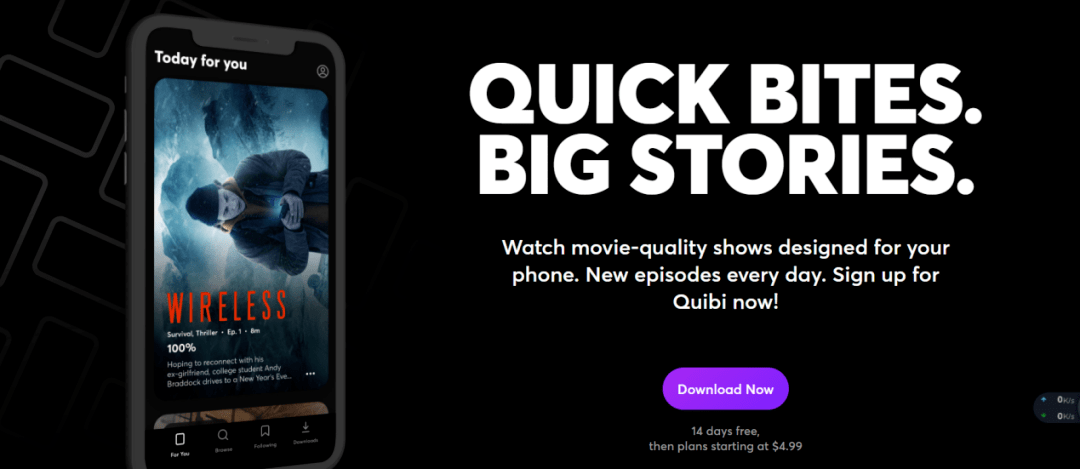 10月22日凌晨,Quibi的创始人发表联名信,宣布即将关闭平台服务,并将在接下来几个月为Quibi的内容和技术资产寻找买家。次日,官方告知客户,Quibi预计将在12月1日左右关闭流媒体服务。
