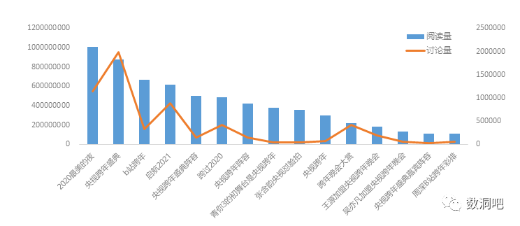 图7 微博平台两台跨年晚会阅读量破亿话题 数据来源:CSM媒介研究