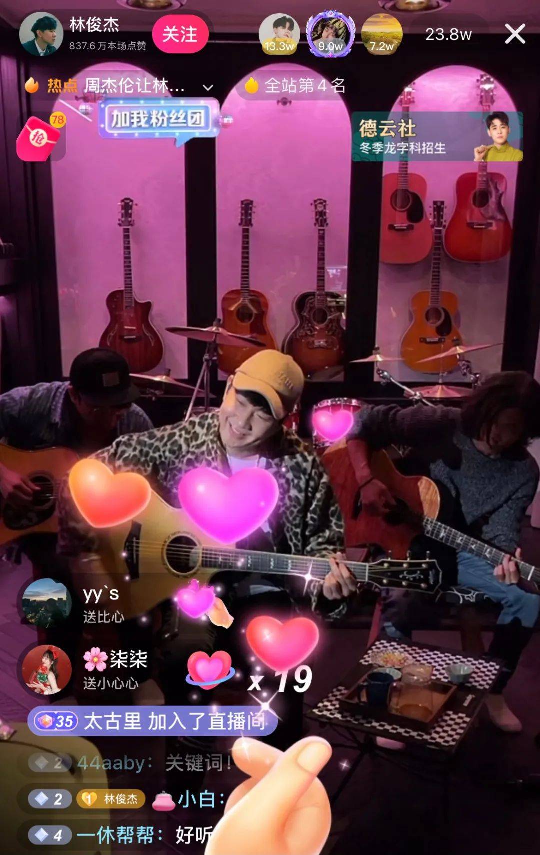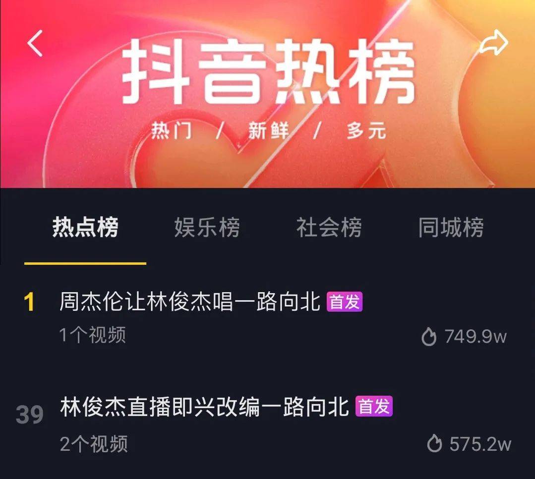 直播重头戏之一点歌环节中,宠粉的林俊杰不仅改编演唱了粉丝最为期待的《Too bad》,还打趣弹幕中频繁出现的《一路向北》是周董亲自点的歌,乐迷也配合回应道:“摊牌了,我是杰伦”。#周杰伦让林俊杰唱一路向北、#林俊杰直播即兴改编一路向北等相关话题也登上了抖音热榜。