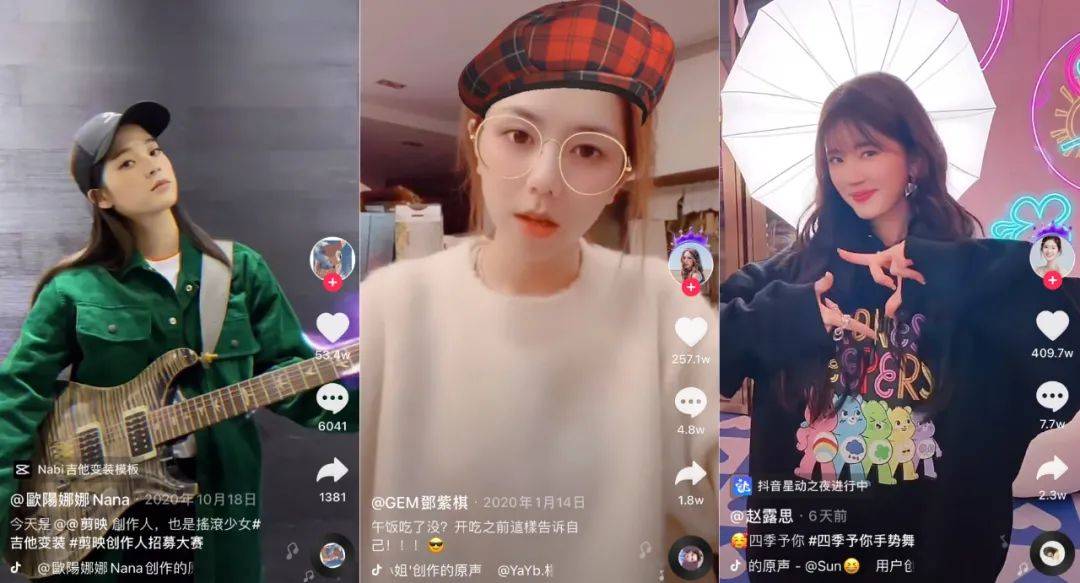 抖音似乎没有不能容纳的明星,从演员、歌手、音乐人到制作人、喜剧人,抖音的明星体系一直在不断扩大。如今,德云社的人气选手郭麒麟及秦霄贤、搞笑艺人辣目洋子、从女团走出的杨超越及虞书欣、央视主持人尼格买提等等,都在抖音以短视频、直播分享着自己的作品和生活,向粉丝和大众展示着多元的一面。