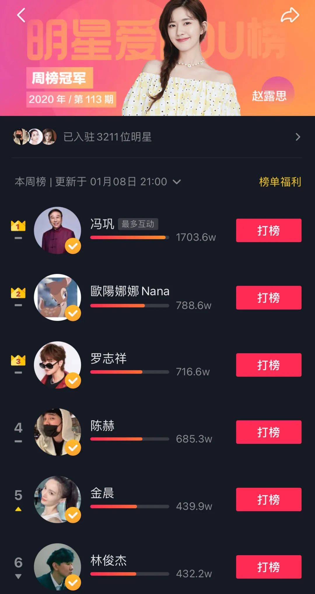 官方数据显示,截至目前,抖音平台上已经入驻包括Angelababy、赵丽颖、章子怡、蔡徐坤等超 3100 位明星。2020年现象级明星吴亦凡、林俊杰、陈奕迅等人的入驻,代表着抖音明星价值链的再度头部化。