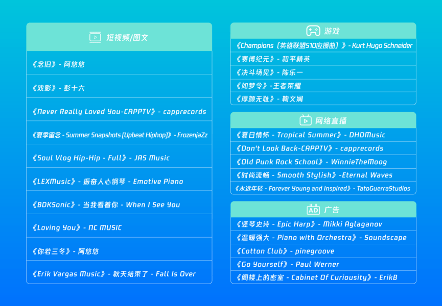 随着互联网内容生态的繁荣,音乐已经成为各类内容展现形式中不可或缺的一环。无论是各类自媒体推文还是视频内容,还是游戏、H5,优质的音乐素材都能大幅提升作品的传播效果。