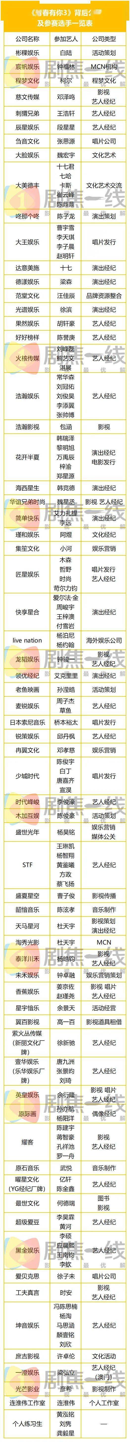 附《青春有你3》《创造营2021》公司及选手信息表:
