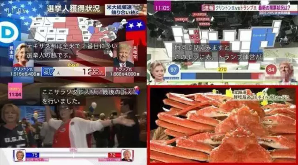 2016年美国大选川普获任总统时,东电在“快看啊好大一只大闸蟹!”