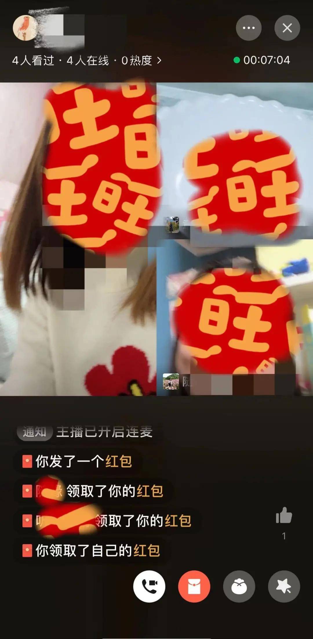 “直播红包”可以选择对某个群聊定向开放,用户在直播中可以向群成员发放群聊红包,吸引粉丝点进直播观看并领取。同时,群成员可以向主播申请连麦上线,上麦的成员能继续在直播间内发放红包。
