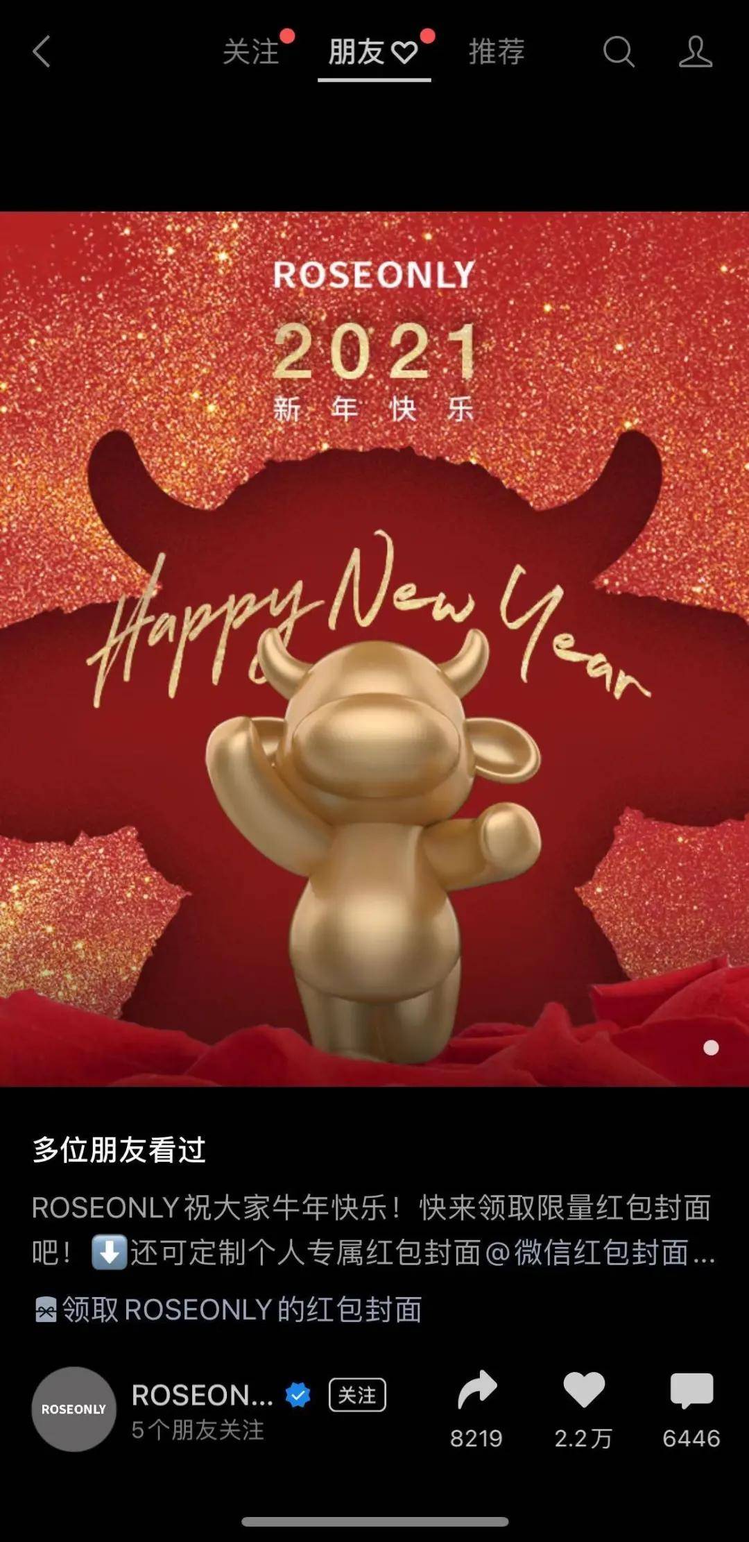 今年的微信红包封面,还承担了激活视频号的作用。2020年12月,微信推出了个人定制红包封面的方案,但这项功能只对企业或个人认证的视频号开放。需要个人创作者发表原创内容,并达到1000人以上的有效关注数才行。